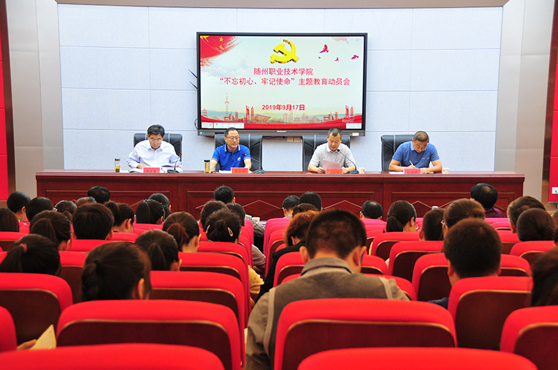 根据中央精神、湖北省委部署,按照随州市委第二批“不忘初心、牢记使命”主题教育安排,9月17日上午,我院在学术报告厅举行了“不忘初心、牢记使命”主题教育动员会。党委书记李德荣同志对“不忘初心、牢记使命”主题教育作动员部署,市委第四巡回指导组组长肖文发同志出席会议并讲话,校党委副书记、院长马大奎主持会议。李德荣指出,开展“不忘初心、牢记使命”主题教育,是以习近平同志为核心的党中央作出的重大部署,是学习贯彻党的十九大精神的重要举措,是党始终铭记历史和开创未来的重要力量,是提升基层党建活力的重要实践,是推动随职高质量发展的重要抓手。开展主题教育意义重大、影响深远。全体党员要始终牢记立德树人,为党育人、为国育才这个初心和使命,始终践行习近平总书记赋予湖北的新期望和赋予职业教育的新期望,奋力推动学院事业高质量发展。