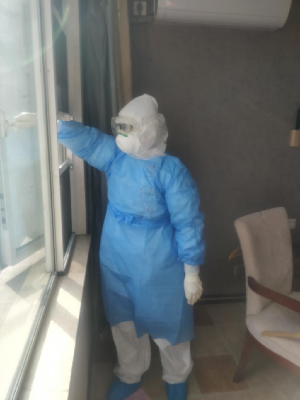 除了在隔离病区的常规护理工作,她们每天还在病区进行健康宣教、给病室和大厅消毒、给病人和医护人员订餐派餐等后勤保障工作。