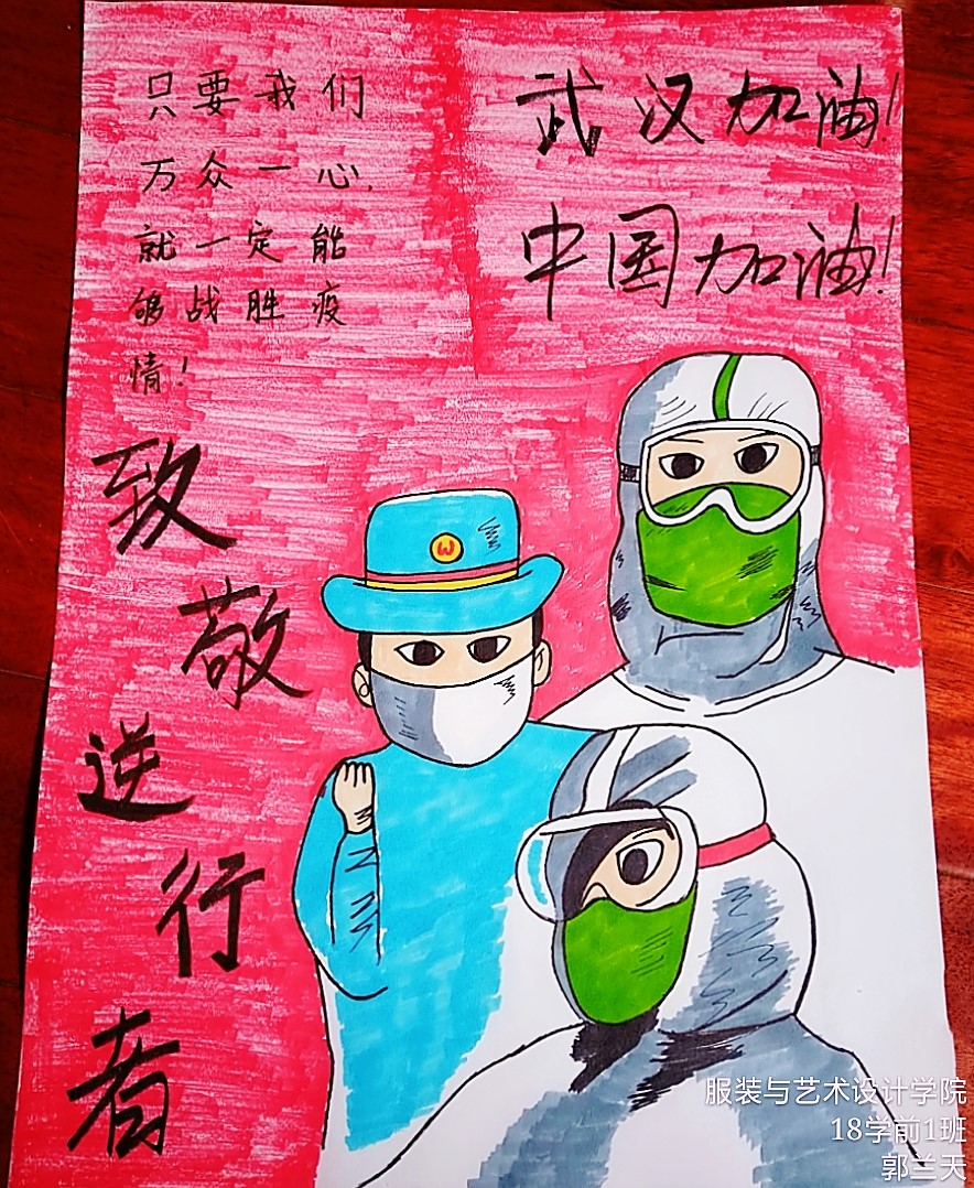 此次活动一经开展,得到随职学子们的热烈响应,我们收到了同学们以笔为“枪”,以漫画、插画、海报,短视频等多种方式创作出一系列优秀的主题性抗疫文艺作品。有很多同学自制防疫口罩,并挥舞画笔在上面作画,在这个特殊的时期一个小小的口罩不止在抵御病毒,也是人们心中的一个太阳照亮着人们的内心,驱散了内心慌张和恐惧,带来安全感,有的同学投身到这次疫情中,他们本是一个个普通人,但是当疾病危险来临的时候,他们舍弃了自己的安危,投入到防疫工作中,为大家宣传疾病的严重性和危害性,参与社区防疫工作,这些正能量的行为让我们为他们感到自豪。那一幅幅画,一个个作品,一个个故事,展现的是抗击疫情的力量,体现的是同学们对当下疫情的关注,对医护工作人员的敬佩,我们的美好家园,全国人民上下一心,共同守护。