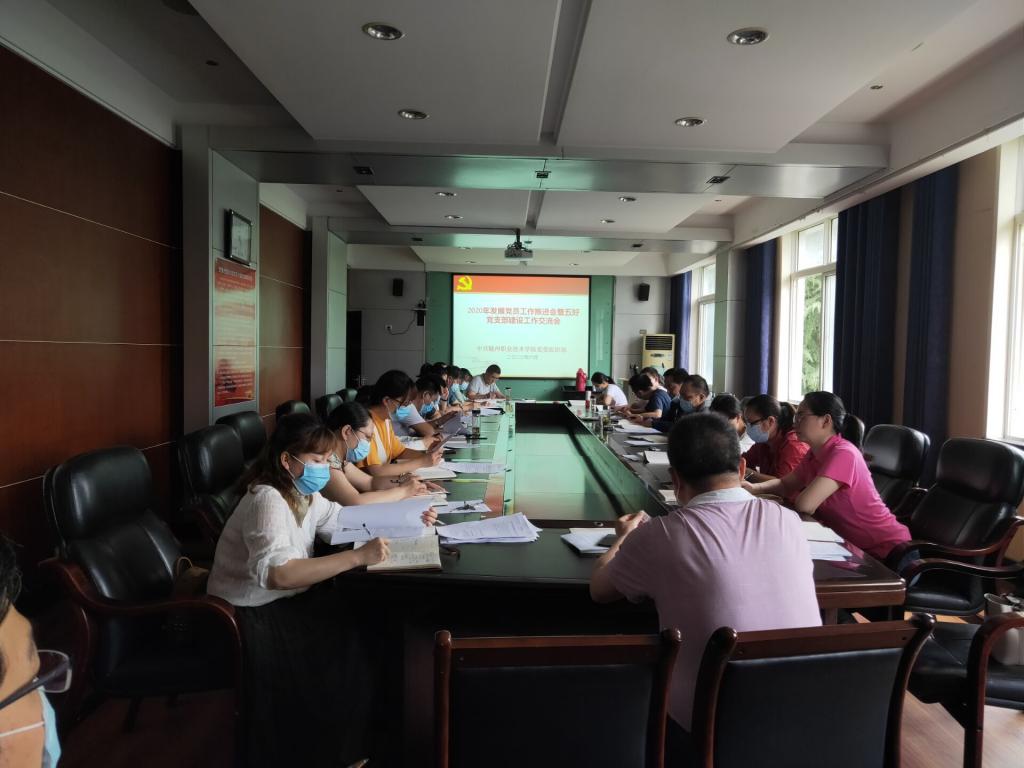 62日下午,学院在行知楼208会议室召开了2020年发展党员工作推进会暨“五好党支部”建设工作交流会。学院党委委员、副院长梁学军,党委组织部全体人员、各党总支组织员、二级学院教工支部书记和学工支部书记、直属支部组织委员参加会议。