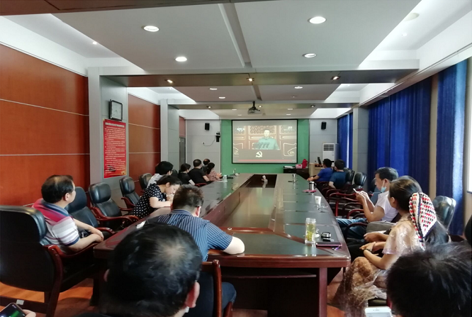 学院中层以上领导干部在学术报告厅集中收看庆祝中国共产党成立100周年大会直播。
