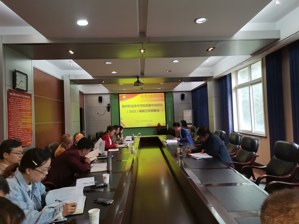 10月11日下午,我校在行知楼208会议室召开随州职业技术学院质量年度报告(2022)编制工作部署会议。党委委员、副院长童加斌,全校参与质量年度报告编制工作的指标责任部门和二级学院负责人参加此次会议。质量管理处处长肖武主持并作工作安排。