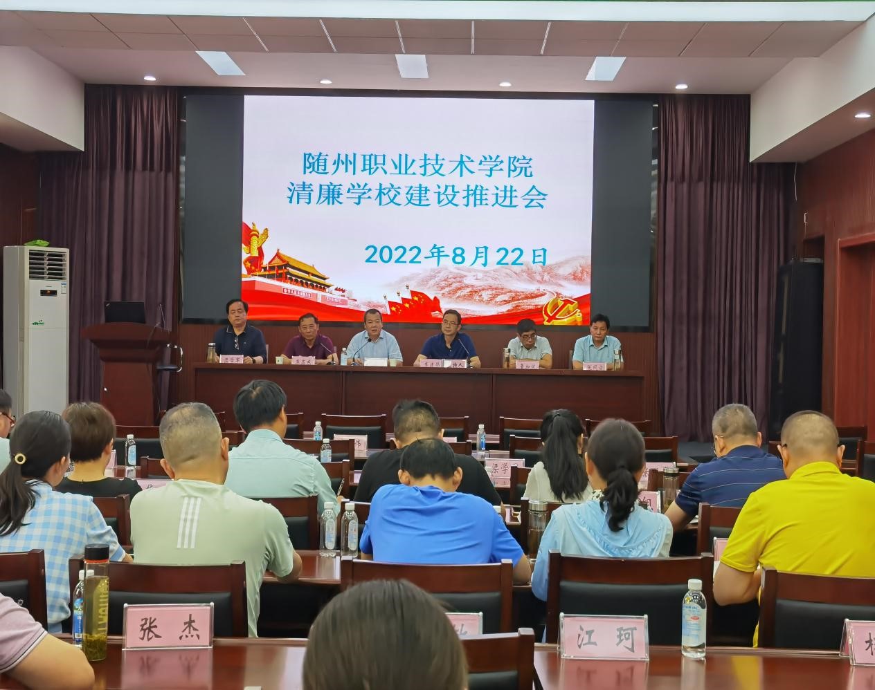 为深入贯彻落实《中共湖北省委关于推进清廉湖北建设的意见》精神,切实把清廉学校建设工作落到实处,着力营造“政风清明、校风清净、教风清正、学风清朗”的良好教育生态和发展环境,8月22日,随州职业技术学院在随州市委党校崇文楼召开清廉学校建设推进会,校党委班子成员及全体中层干部参加了会议,会议由党委副书记、校长李建伟主持。