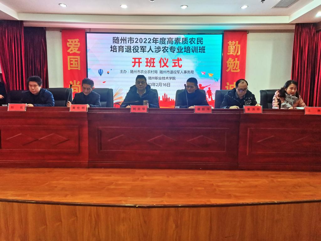 2月16日,由随州市农业农村局、随州市退役军人事务局联合举办,随州职业技术学院承办的2022年度高素质农民培育退役军人涉农专业培训班(经营管理型),在随州市华夏宾馆开班。随州市各县、区推荐的60余人退役军人参加了培训,培训时间为2月16日-2月26日。