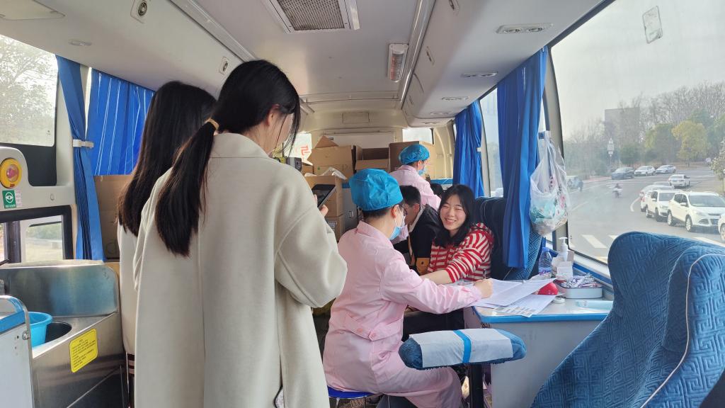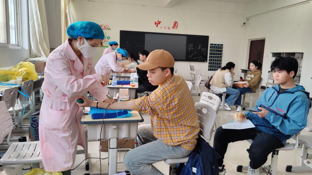 活动现场,在医护人员的指引下,学校师生有序地进行登记、填表、体检、采样,认真听取医护人员讲解献血注意事项与献血的知识。为预防紧急情况,活动现场还专门设置了休息区,提供热水、面包和牛奶,保障献血后出现不适症状的学生能够及时得到休息和缓解。