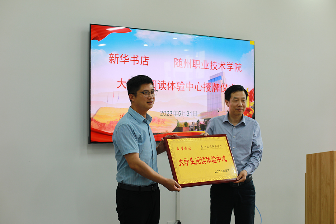 5月31日,随州职业技术学院与随州市新华书店在学校一站式学生社区共同打造的大学生阅读体验中心正式授牌。校党委委员、副校长邹厚亏,随州市新华书店副总经理李晓亮,学生工作部副部长汪勇、二级学院学工办主任及部分学生代表参加授牌仪式。