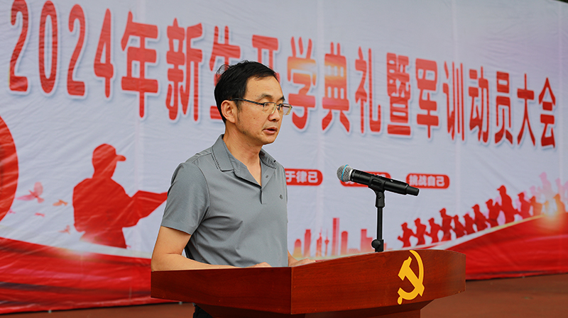 李建伟致开幕词。他指出,作为新一代的大学生,身上肩负着实现中华民族伟大复兴的历史重任,脚下的每一步都将与国家的发展、民族的复兴紧密相连。学校对军训工作十分重视,对军训成效寄予厚望。希望有关单位密切配合,精心组织,各二级学院学管干部、新生辅导员全程参与军训、全力配合教官工作,认真做好学生教育、管理及服务保障工作。希望军训教官高标准、严要求,精心指导,认真施训,圆满完成军训各项任务。