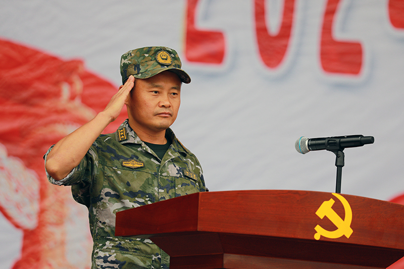 顾云敏对全体承训教官提出文明施训、科学组训、谦虚好学的要求,同时号召2024级新生敢于吃苦、敢于锻炼,服从命令、听从指挥。