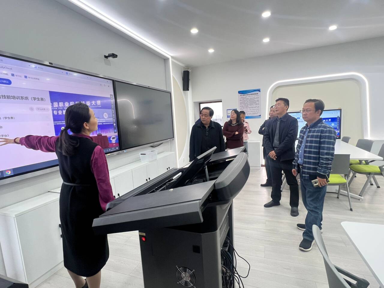 市教育局一行先后来到图书馆一楼美术手工作品展、学前教育实训室,他们表示希望随州市各中职院校对口专业和各幼儿园的领导老师们能够来学校多走动、多交流,并开展活动。