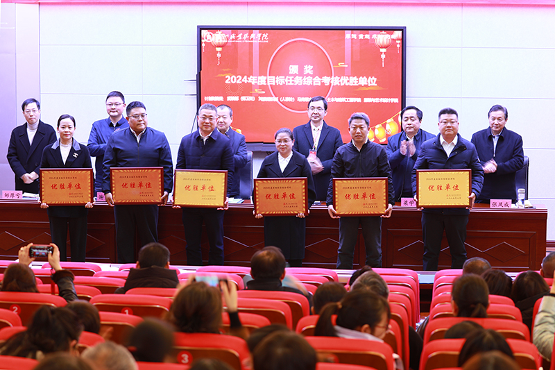 会上,党委委员、副校长谢冠林宣读《中共随州职业技术学院委员会关于2024年度目标任务考核情况的通报》;校领导为获得2024年年度目标任务考核的6个优胜单位进行颁奖;党委副书记、校长李建伟代表学校与科研处、专用汽车与应急产业学院现场签订2025年度目标任务考核清单。