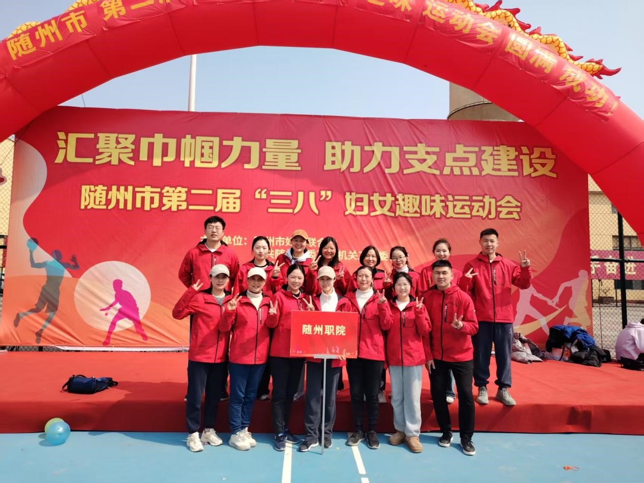 为全面落实中国妇女十三大、省第十三次妇代会精神,纪念第115个三八国际妇女节,进一步团结引领广大妇女听党话、跟党走,3月6日上午,随州市第二届“三八”妇女趣味运动会在齐星健身村举行。校工会带领由公共课部和团委组成的16人教职工代表队参加。经过激烈的角逐,我校代表队最终荣获一等奖的好成绩。