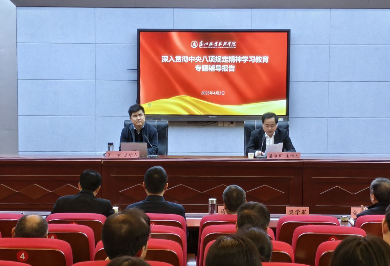 4月3日,我校在学术报告厅举办深入贯彻中央八项规定精神学习教育专题辅导报告会。党委书记马大奎,党委委员、副校长谢冠林、梁学军、邹厚亏,工会主席张凤成,全体中层干部,各党总支、直属支部委员,基层党支部委员,各二级单位教研室主任及以上干部,无课党员教师,青马班全体学员共200余人参加学习。报告会由党委委员、副校长梁学军主持。