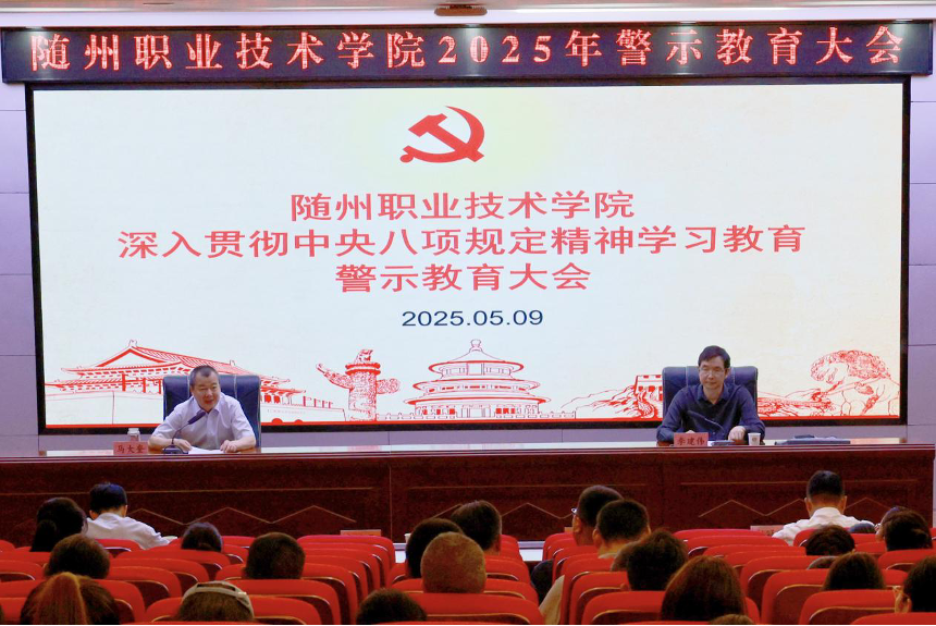为深入贯彻中央八项规定精神学习教育,充分发挥反面典型警示教育作用,推进作风建设常态化长效化,5月9日上午,我校在学术报告厅召开深入贯彻中央八项规定精神学习教育警示教育大会。党委书记马大奎出席会议并讲话,党委副书记、校长李建伟主持会议。党委委员、副校长谢冠林、邹厚亏,工会主席张凤成出席会议。学校中层以上干部、无课党员教职工、关键岗位人员200余人参加会议。