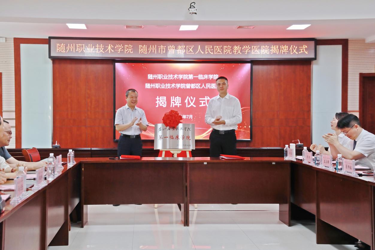 7月7日上午,随州职业技术学院曾都区人民医院、随州职业技术学院第一临床学院揭牌仪式在曾都医院举行,双方将进一步深化医教协同、共育健康人才。这标志着双方合作正式迈入深度协同、共育人才的新阶段。校党委书记马大奎,党委副书记、校长李建伟,曾都区委书记姜皓,副区长王少东等领导出席活动。仪式由曾都区副区长王少东主持。