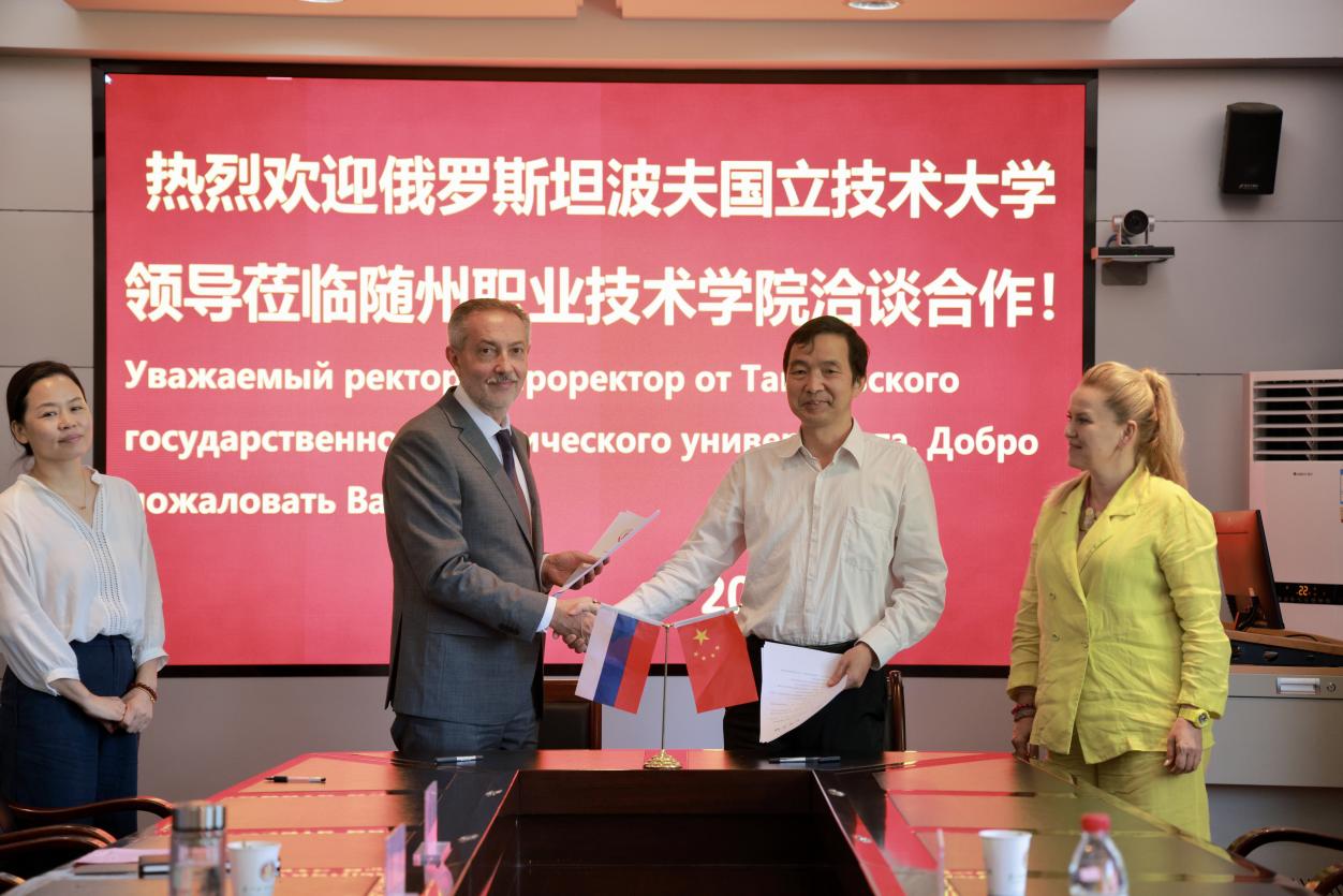 8月15日,俄罗斯坦波夫国立技术大学校长米哈伊尔·克拉斯杨尼扬斯基、国际副校长埃琳娜·米什琴科一行,在武汉枫雅国际教育咨询有限公司董事长韩永广陪同下访问随州职业技术学院。我校党委副书记、校长李建伟,党委委员、副校长梁学军热情会见并举行会谈。
