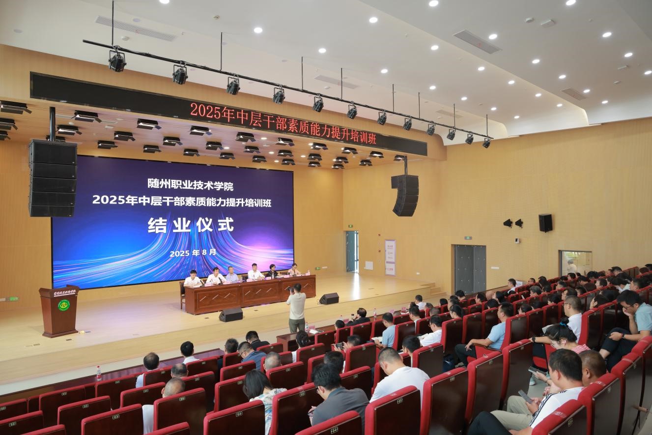 8月22日,我校2025年中层干部素质能力提升培训班结业仪式在黄冈职业技术学院学术报告厅顺利举行。学校党委书记马大奎出席会议,党委副书记、校长李建伟出席并讲话。黄冈职业技术学院党委副书记郑柏松到会致辞,黄冈职业技术学院党委委员、纪委书记、监察专员胡燕主持会议。