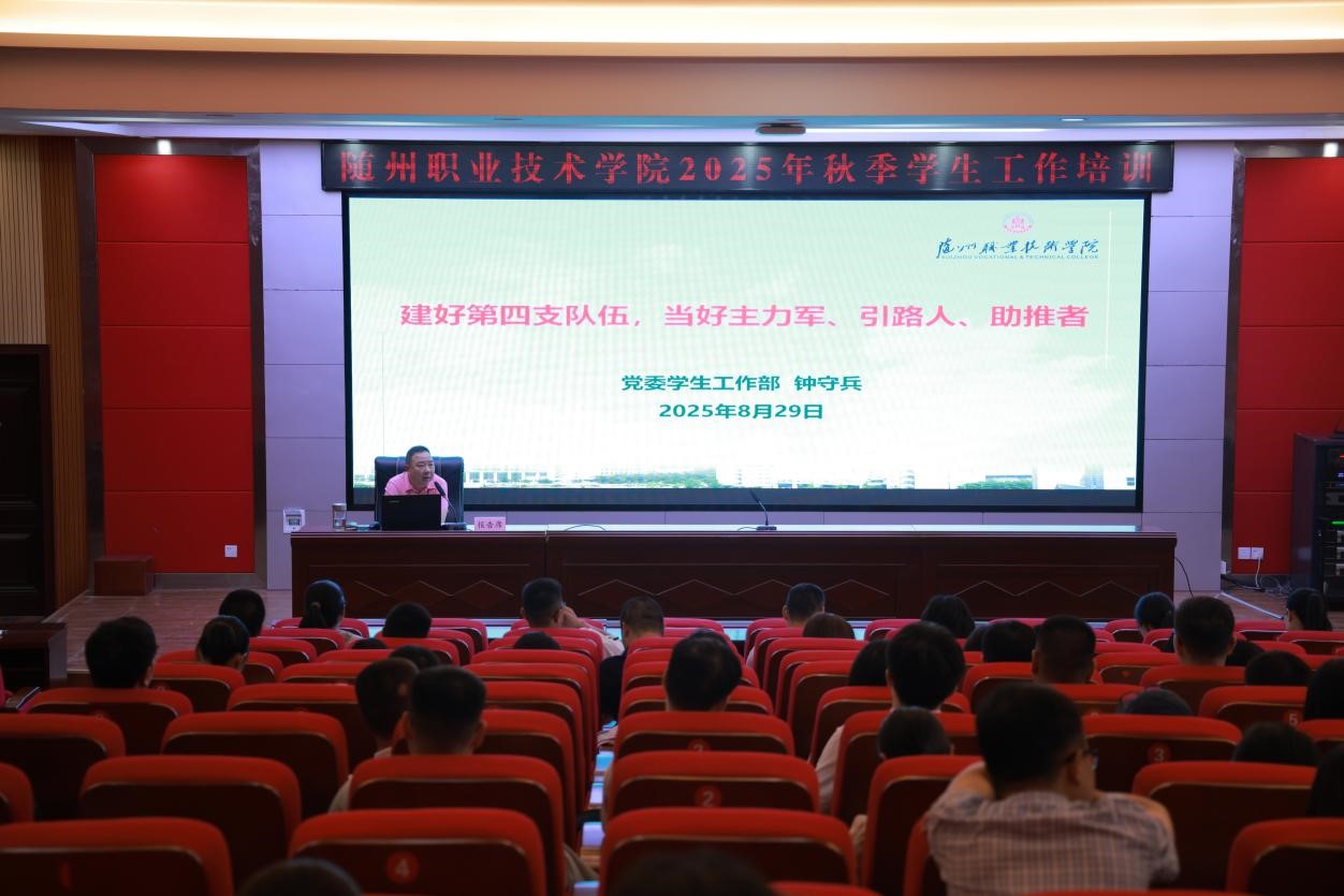新学期启航之际,为全面提升学生工作队伍专业化水平,赋能思政教育高质量发展,8月29日,我校在学术报告厅举办2025年秋季学生工作培训会。本次培训聚焦“精准育人”与“队伍赋能”双核心,学生工作部部长钟守兵、副部长汪勇分别作专题分享,学工部、团委、保卫处全体工作人员及各院系党总支副书记、学工办人员、全体专兼职辅导员参加。