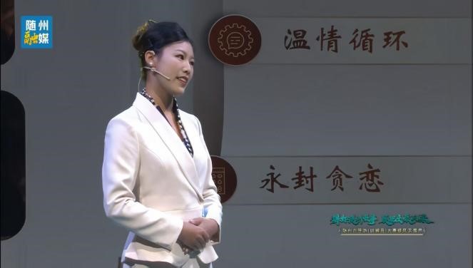 比赛中,孙宇婷同学沉着自信,发挥稳定。在专业讲解环节,她逻辑清晰、表达流畅,生动阐释了随州文化的深厚底蕴;在风采展示环节,她充分展现出青年文旅人才的朝气与创意,赢得评委一致好评。