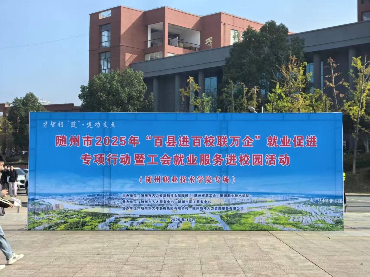 10月28日,随州职业技术学院在校图书馆广场举办2025年秋季专场校园招聘会。本次活动是“才智相‘随’·建功支点”随州市2025年“百县进百校联万企”就业促进专项行动暨工会就业服务进校园随州职业技术学院专场活动,由随州市人力资源和社会保障局、随州市总工会与随州职业技术学院联合主办,旨在为我校毕业生留随就业和企业招才引智搭建高效平台。