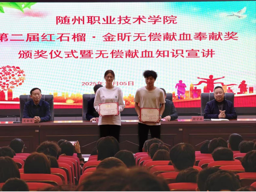 颁奖典礼结束后,随州市中心血站工作人员为在场师生开展了无偿献血科普知识培训,系统讲解了献血流程、注意事项及相关政策,进一步加深了师生对无偿献血的科学认知,激发了大家参与社会公益的热情与责任感。