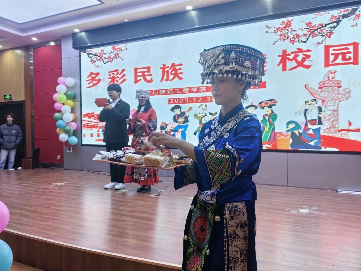 为深化民族团结进步教育,铸牢中华民族共同体意识,促进校园多元文化交融,2025年12月3日晚,土木与建筑工程学院在云桂楼报告厅举办“多彩民族 和美校园”民族团结主题教育活动。学院师生齐聚一堂,通过民族美食体验与文艺节目展演,共同感受中华民族文化的丰富多彩,营造了团结友爱、和谐共融的校园氛围。