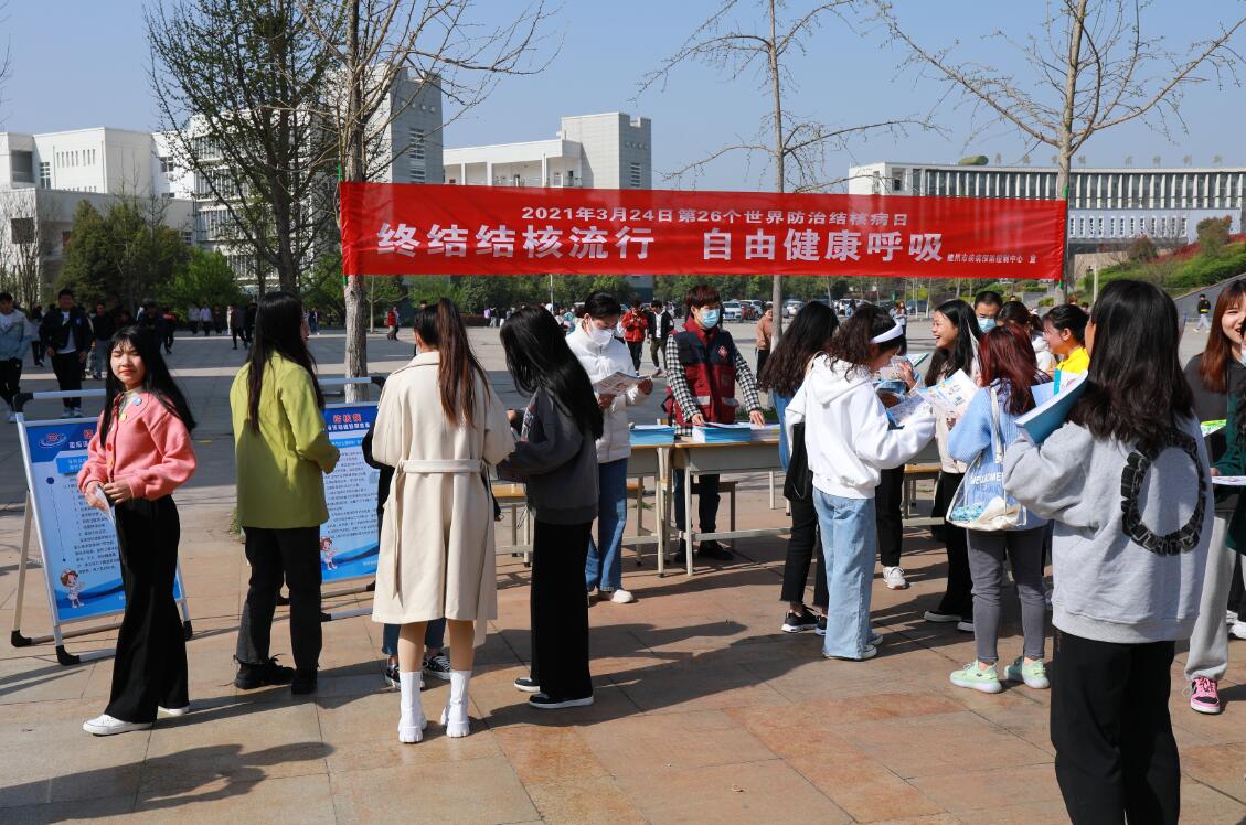 2021年3月24日是第26个“世界防治结核病日”。 为认真贯彻落实党的十九大精神和推进健康中国建设的总体要求,进一步提高师生对结核病危害性的认识,积极预防结核病,3月24日上午,学院举办以“预终结结核流行 自由健康呼吸”为主题,联合市疾病预防控制中心结核病防治所开展相关活动。