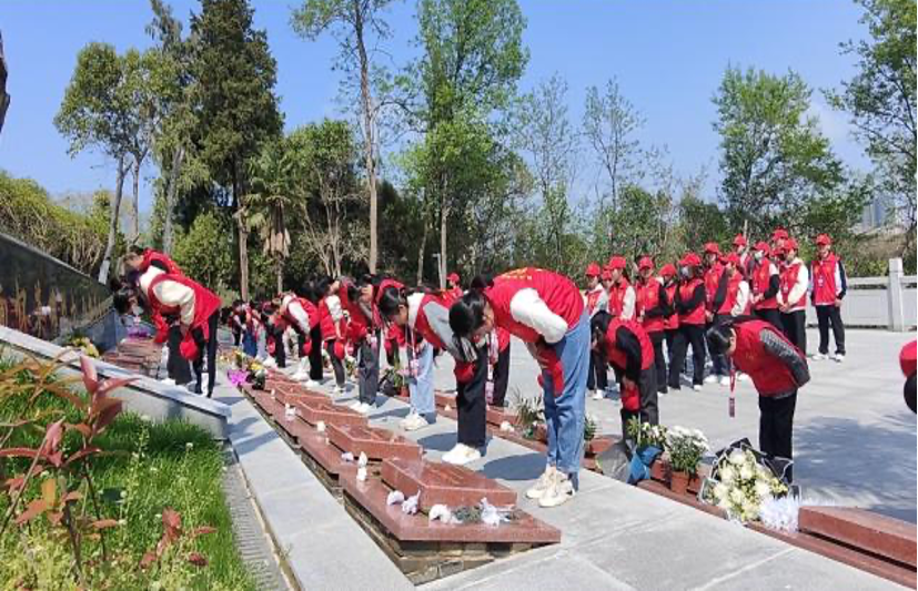 4月5日,随州职业技术学院青年志愿者全体社干及部分会员共同开展了以“清明时节祭哀思鲜花一朵慰英魂”为主题的祭英烈活动。