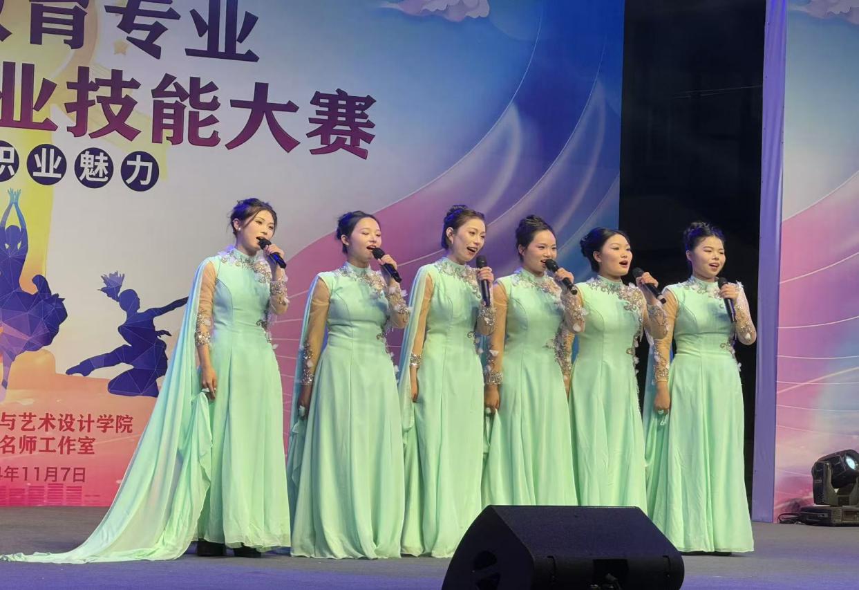 近日,服装与艺术设计学院和杨芳名师工作室共同承办的学前教育专业第九届职业技能大赛展演活动在图书馆门前广场举行。随州市人大委员会副主任郑晓峰,校领导李建伟、谢冠林、童加斌、梁学军、邹厚亏、张凤成和全市20家幼儿园园长莅临现场指导。服装与艺术设计学院800名师生参与,现场吸引近千余名师生驻足观看。