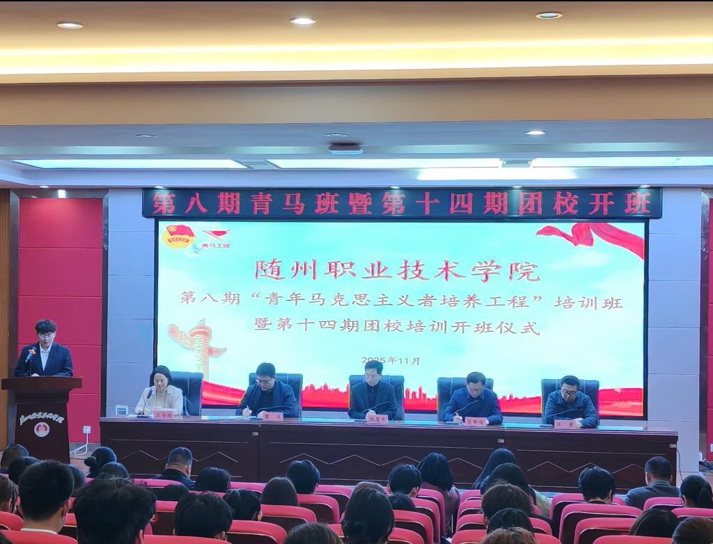 11月11日,随州职业技术学院第八期“青年马克思主义者培养工程”(以下简称“青马工程”)暨第十四期团校培训班开班仪式在学术报告厅举行。校党委委员、副校长邹厚亏出席仪式,相关职能部门负责人、各二级学院党总支副书记、团总支书记及全体100名第八期“青马工程”培训班学员参加。