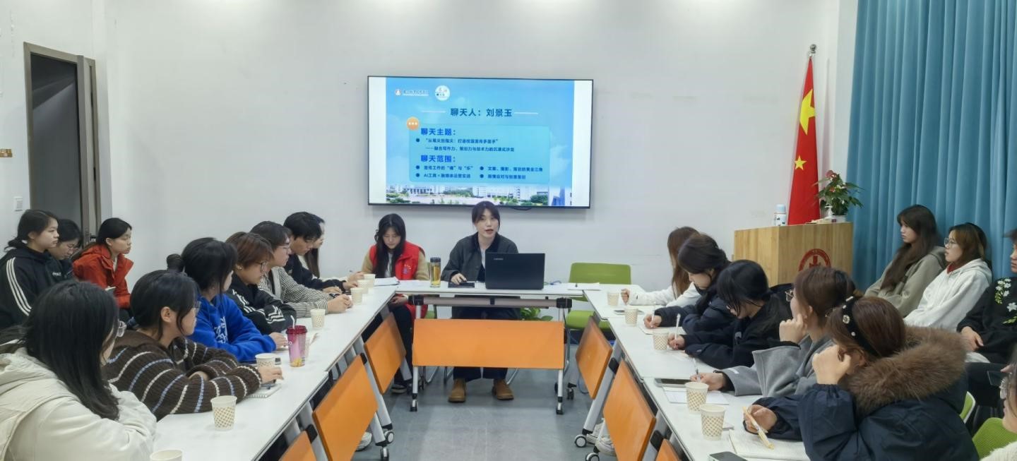 11月13日晚,2025年秋季“名师聊天”第三期在“一站式”学生社区党团活动室进行。本期活动邀请学生工作处副处长刘景玉,以“打造职业院校宣传多面手”为主题,围绕全面提升学生宣传队伍的专业素养与创新能力展开座谈。吸引了来自校内各级学生组织宣传骨干及学生记者团等30余名同学踊跃参与。