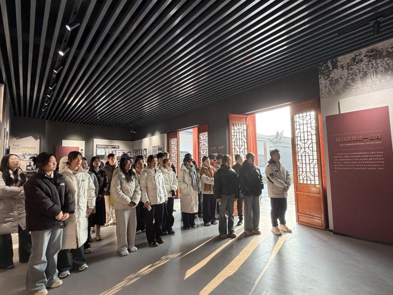 在革命旧址,师生们仿佛置身于当年的艰苦环境,被一幅幅图片、一件件实物、一间间旧屋深深触动,深切感受到革命先辈坚定的理想信念和不屈不挠的奋斗精神。在抗大第十分校会议室旧址,那种“一边干革命一边刻苦学习”的氛围仿佛穿透时光,感染着在场的每一个人,生动诠释了学习强国的重要性。杨文现场带领师生,围绕新四军第五师的革命事迹,结合党的二十届四中全会精神,讲授了一堂生动精彩的党课。