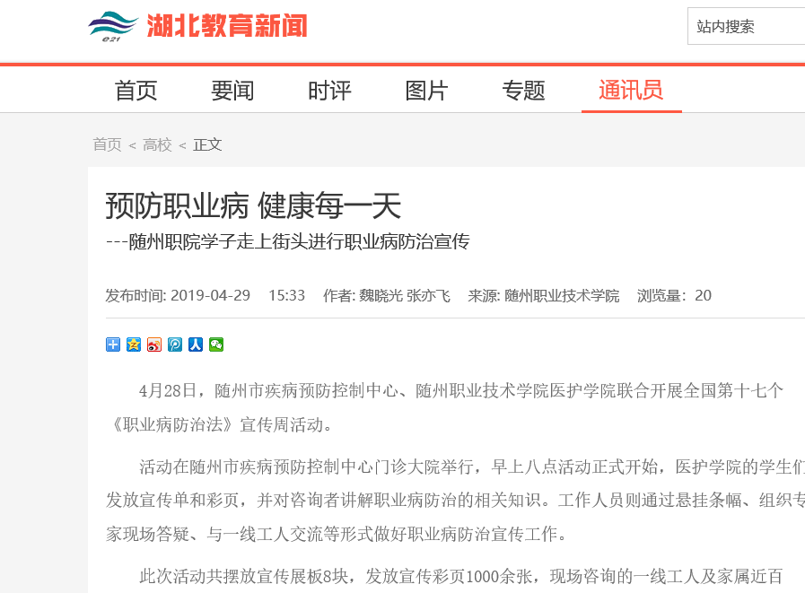 下一条:湖北高校思政网:随州职业技术学院预防职业病 健康每一天