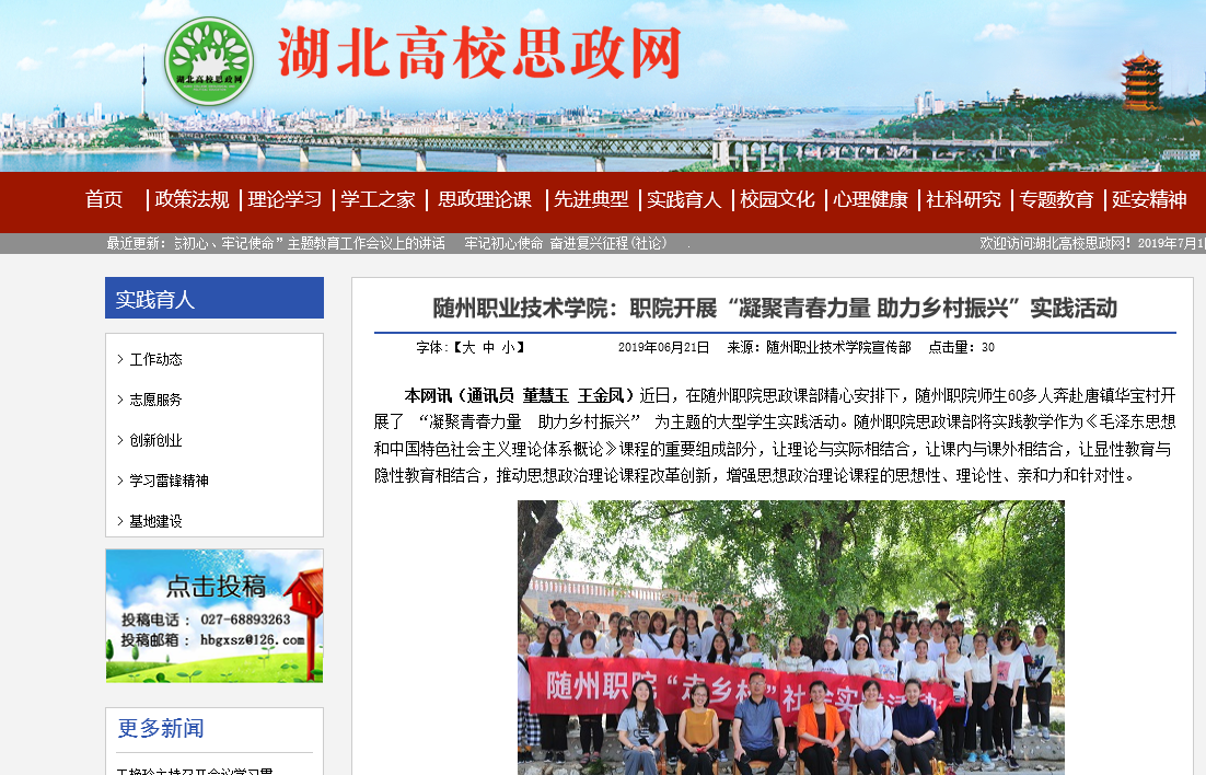 上一条:随州日报:产教融合的成功实践——探寻随州职业技术学院校企合作办学路径