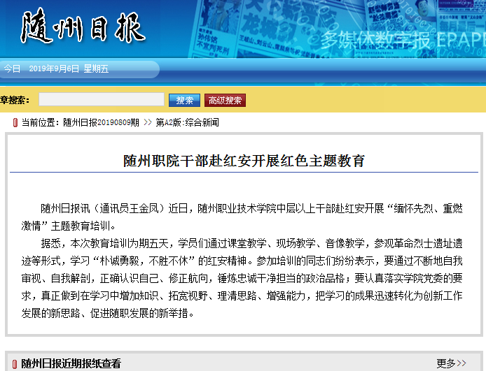 上一条:湖北高校思政网:随州职业技术学院汲取革命文化营养 站稳高校思政课堂