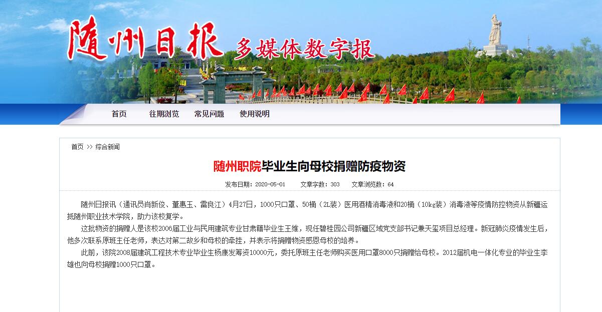 下一条:随州日报:随州职院坚持五个“到位”做好疫情防控