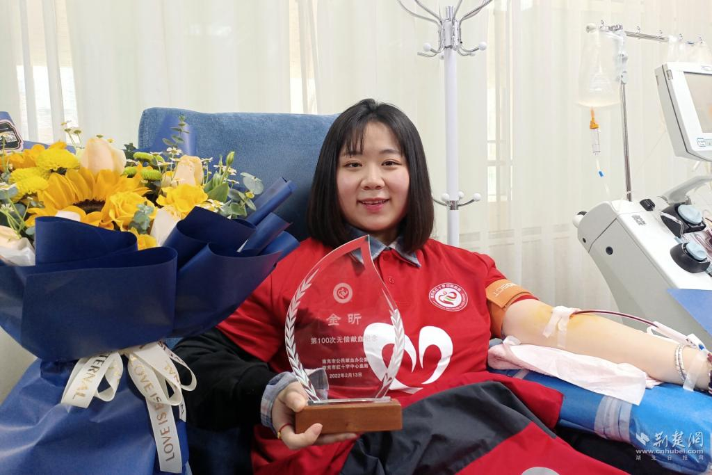 荆楚网(湖北日报网)2022年03月14日讯(记者许文秀 通讯员肖新俊 罗亚男 刘景玉)从18岁开始献血,4年内共计献血100次,累计200个治疗剂量合40000毫升,获得2018-2019全国无偿献血奉献奖金奖……现就读于随州职业技术学院18级医学检验专业的22岁女孩金昕,被四川南充市中心血站称为“献血大王”。